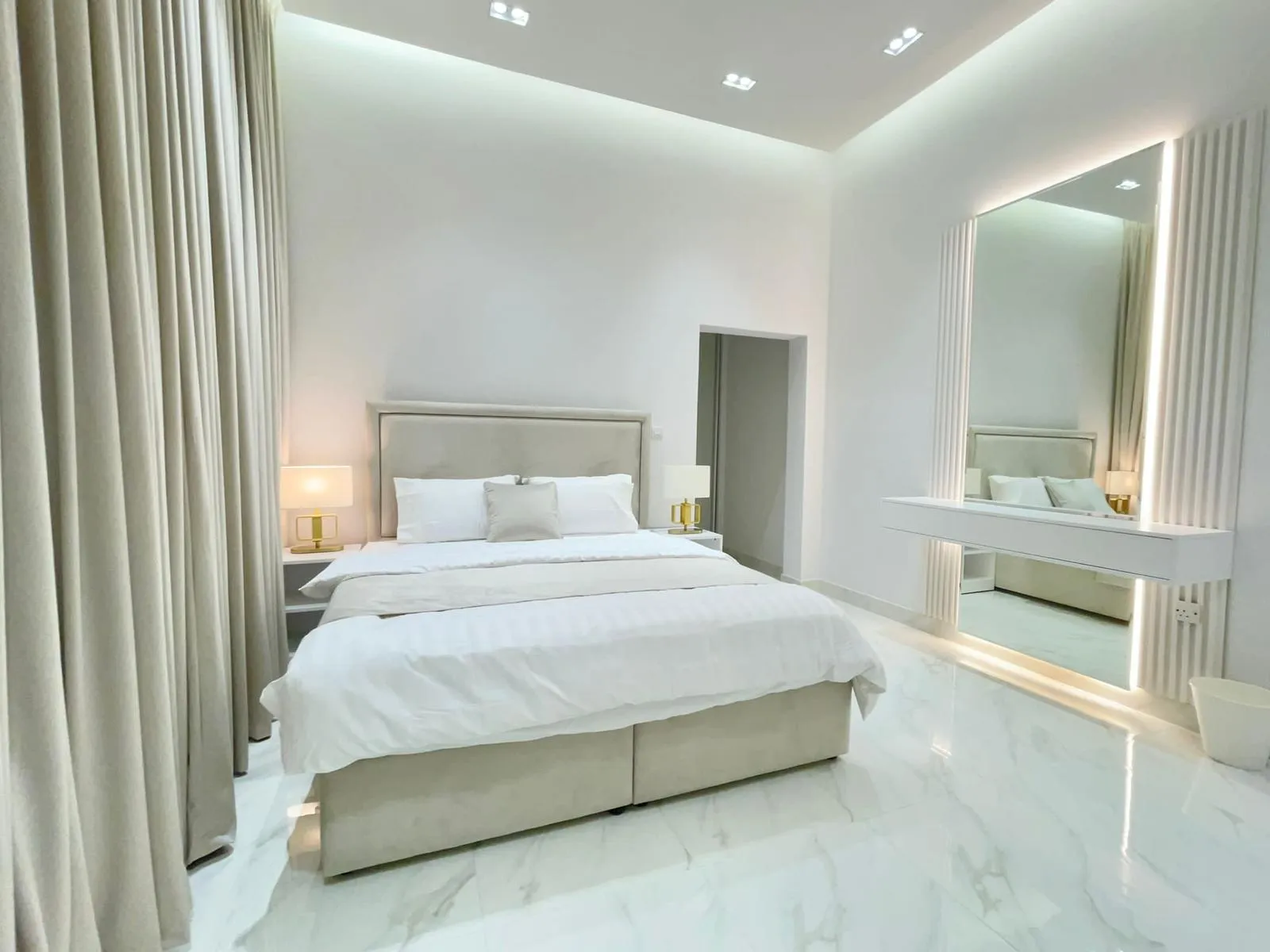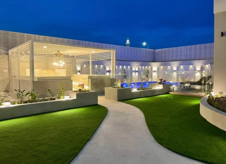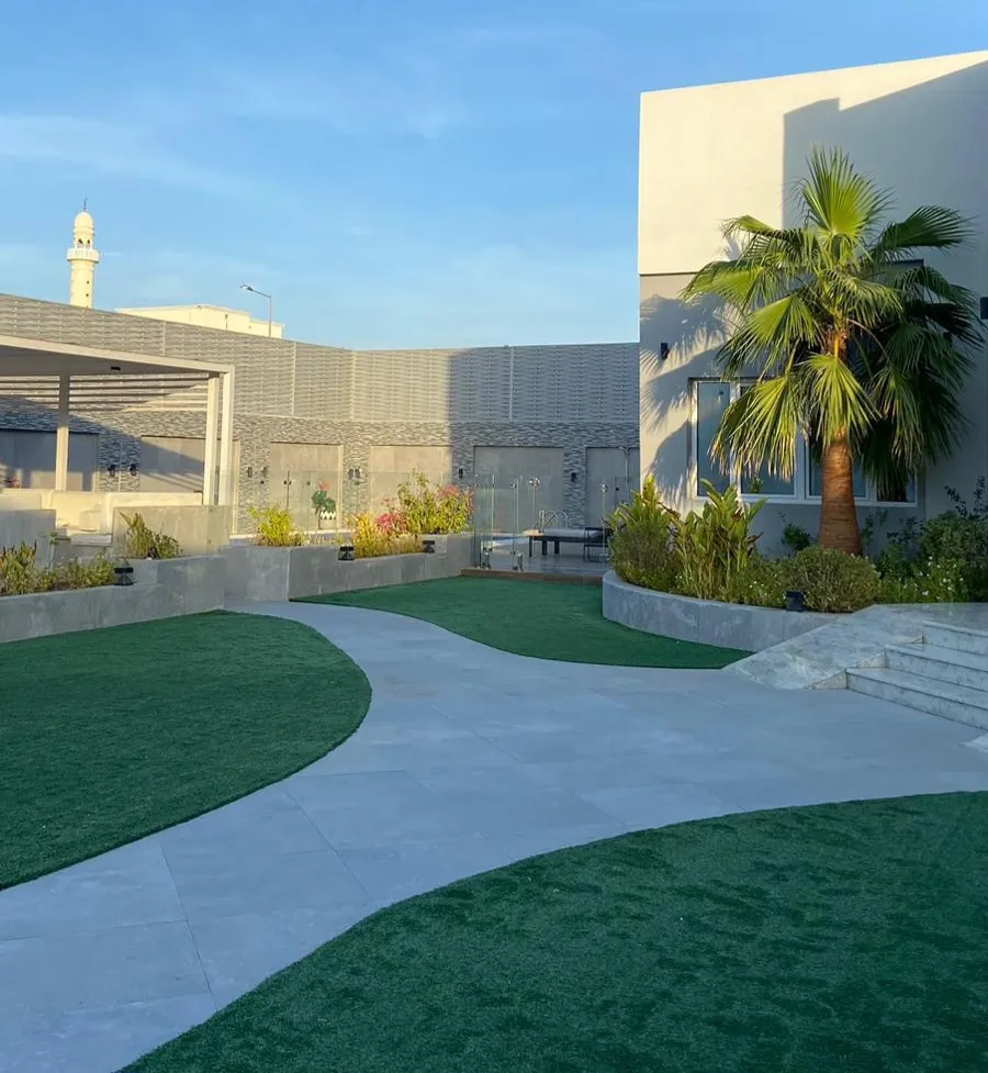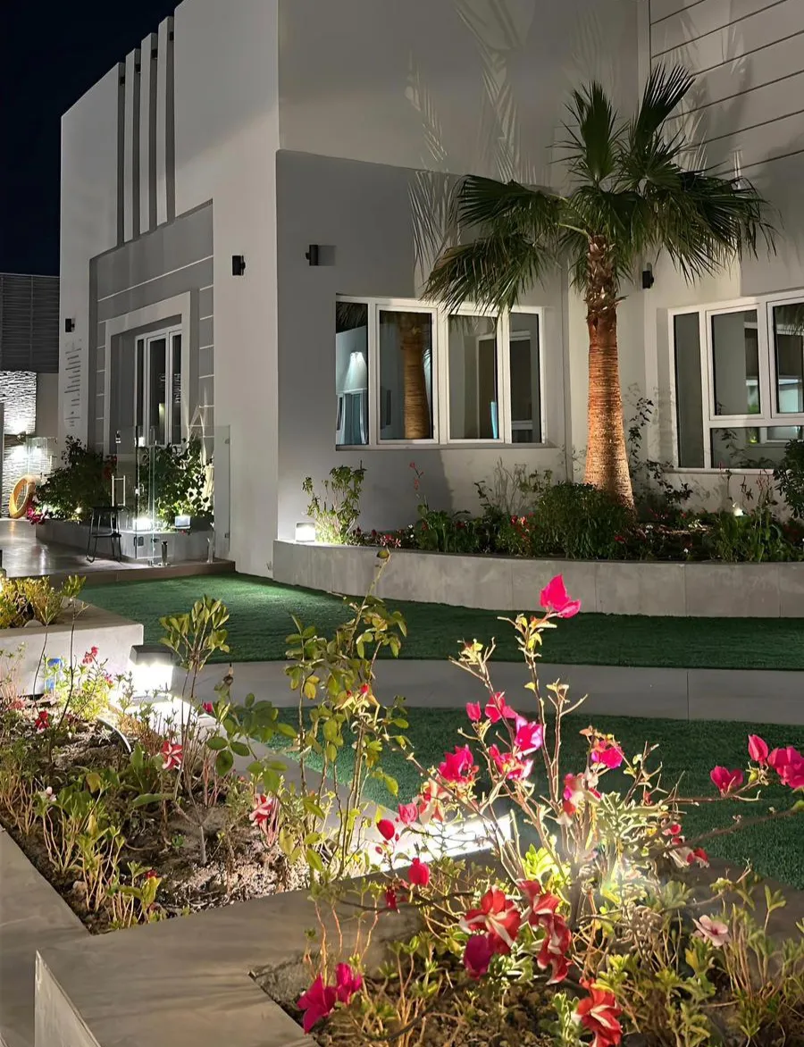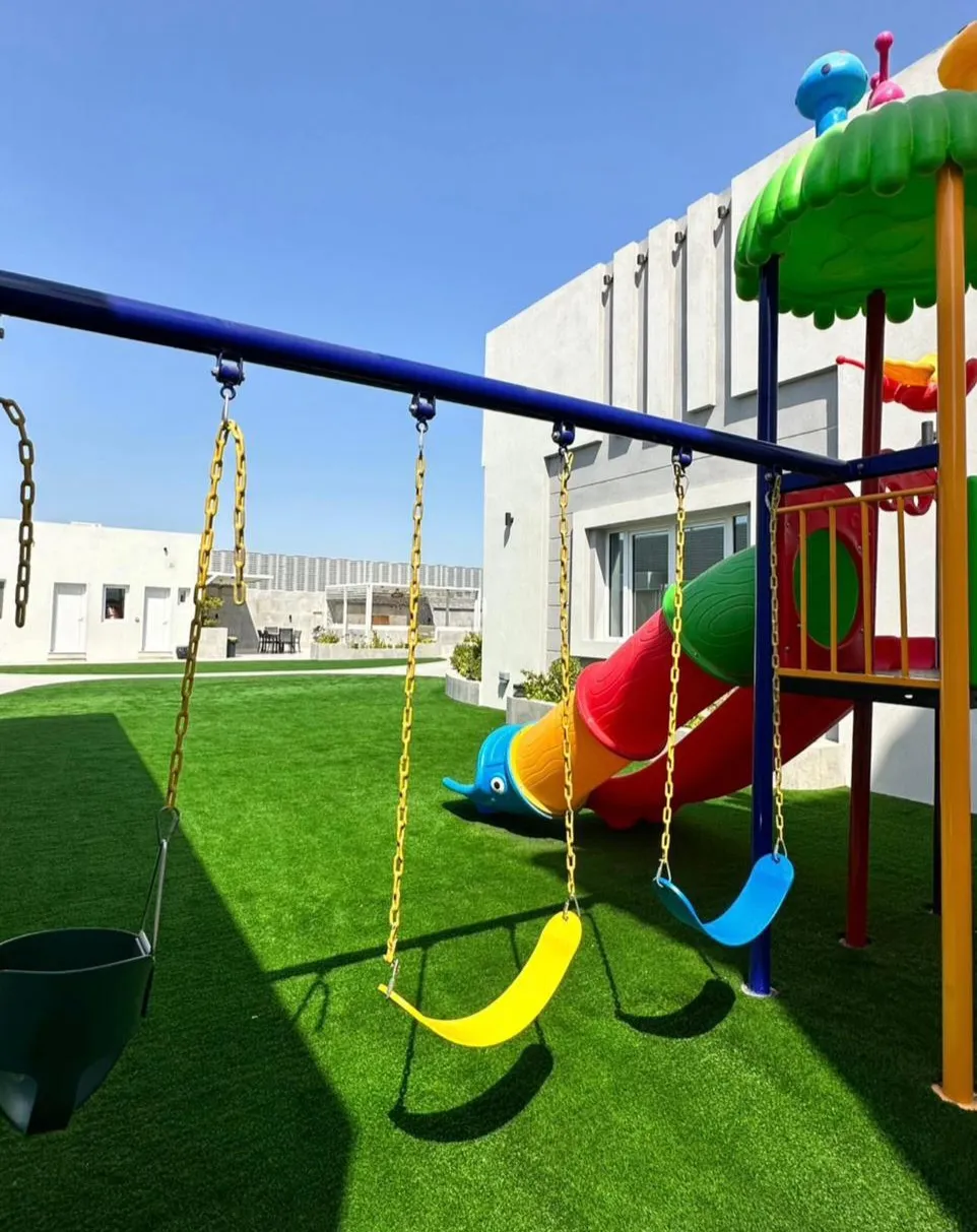 Awesome villa consists of 4 bedrooms and 4 bathrooms and amazing garden with outdoor sitting area, also it includes a swimming pool and kids playing area.