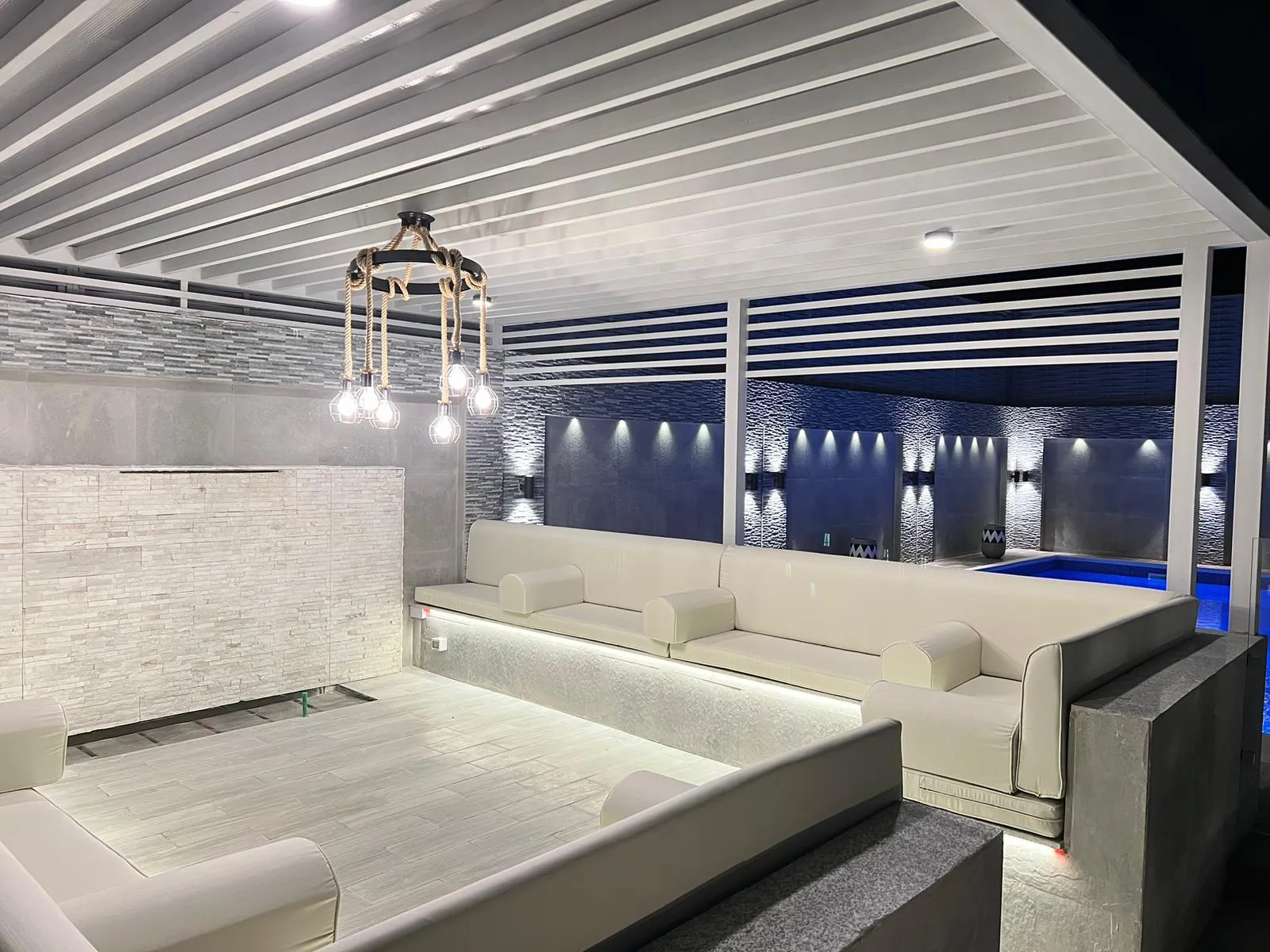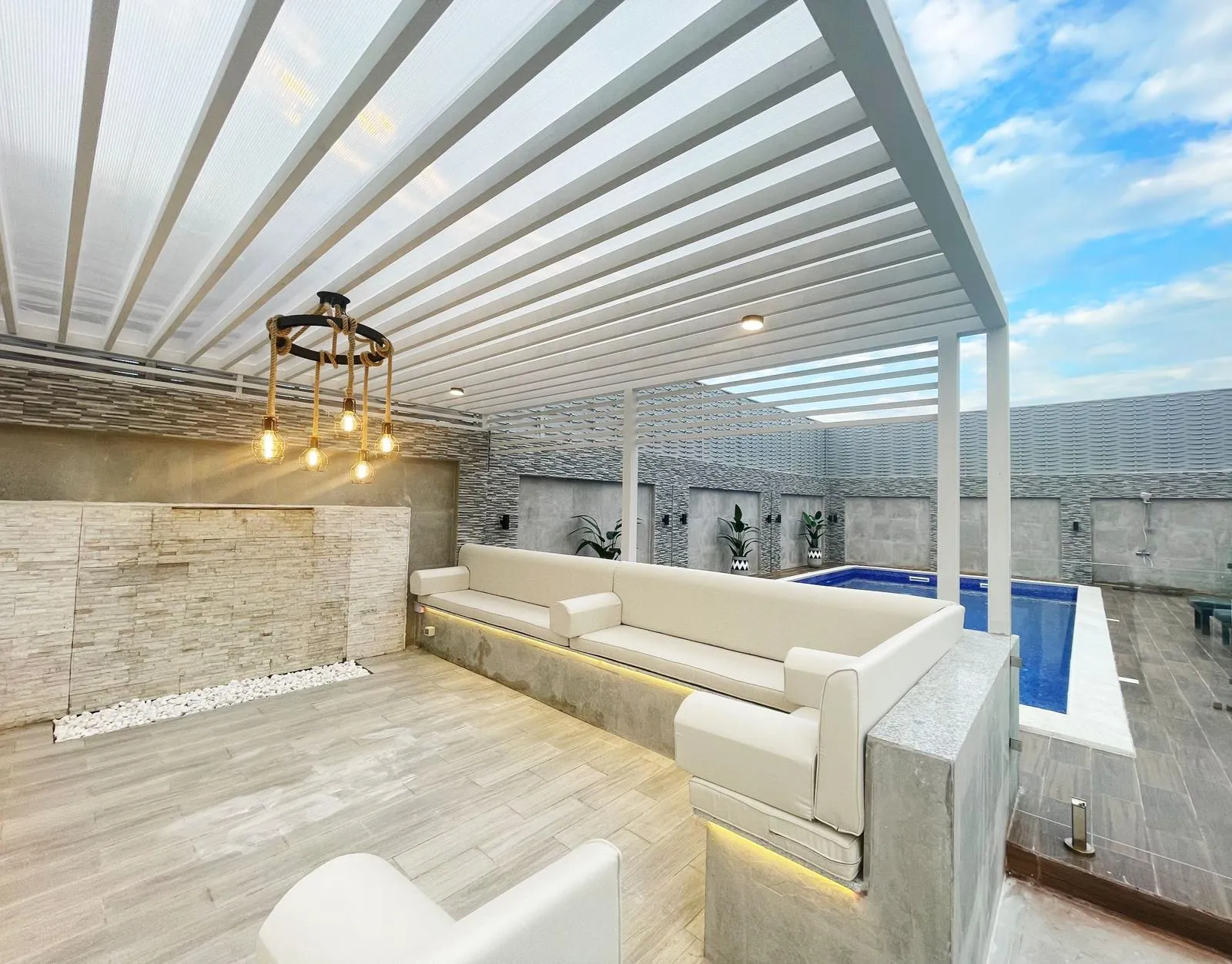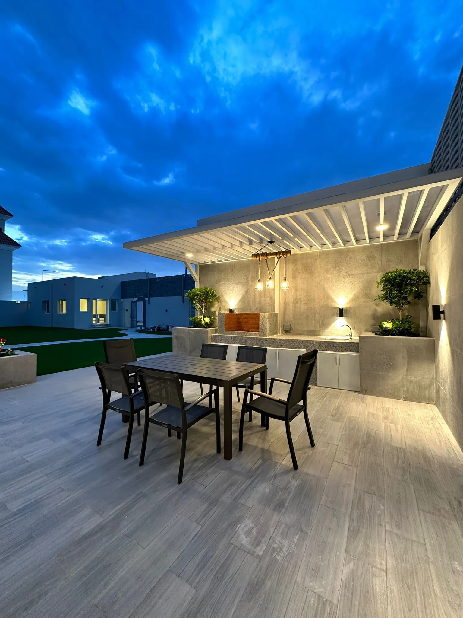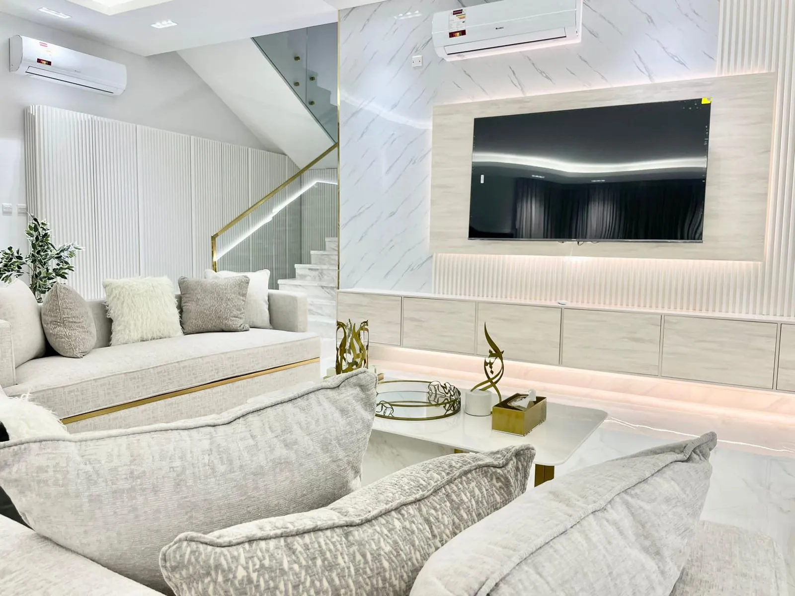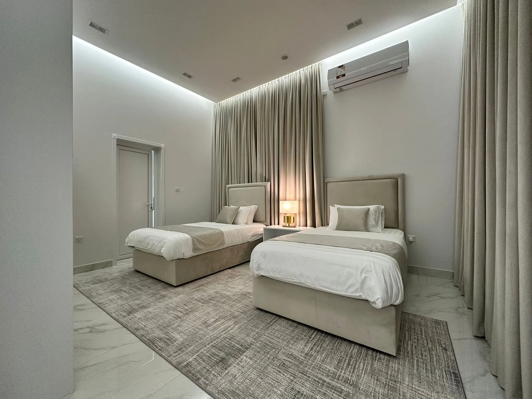 Awesome villa consists of 4 bedrooms and 4 bathrooms and amazing garden with outdoor sitting area, also it includes a swimming pool and kids playing area.