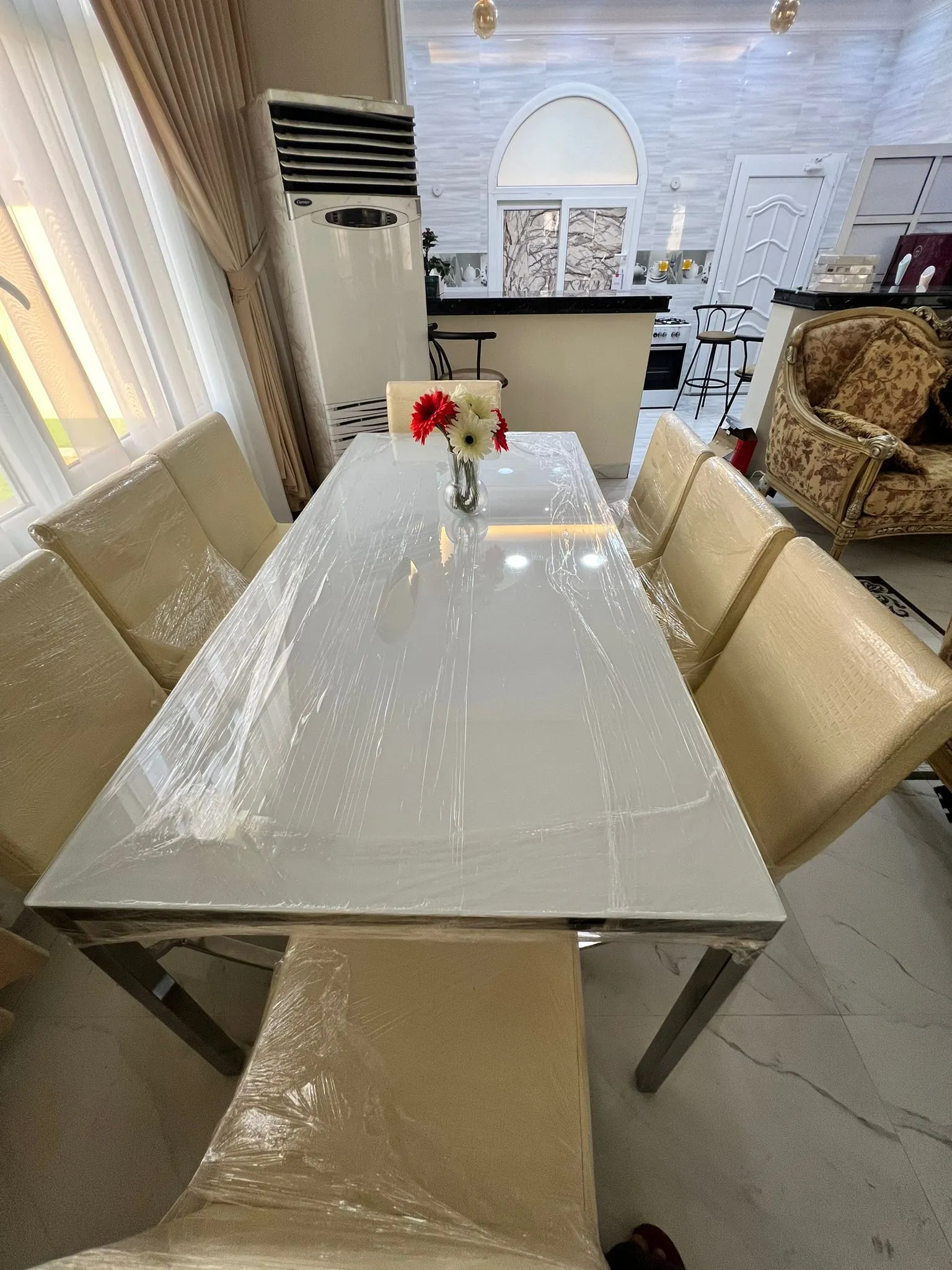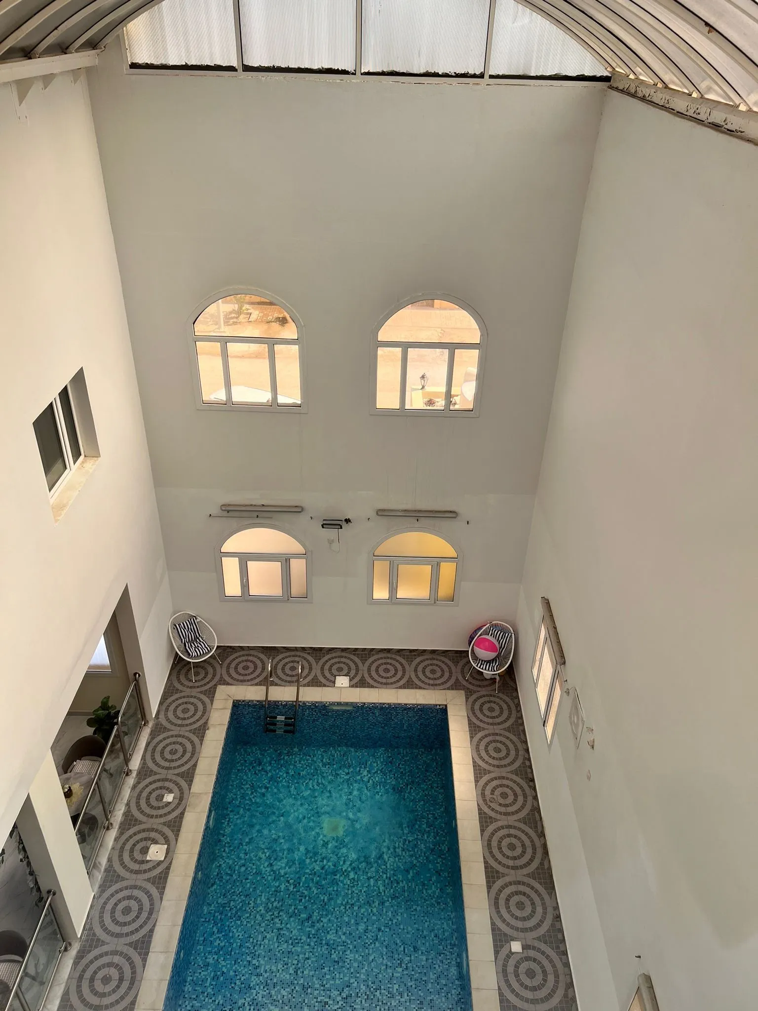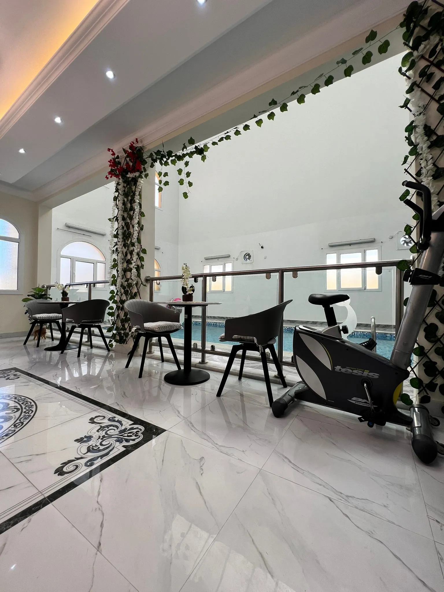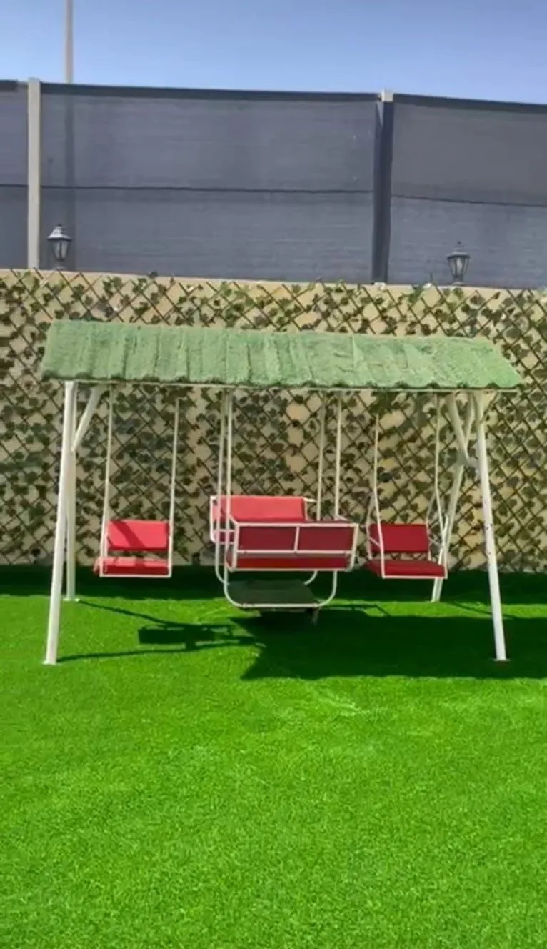 A cosy rest house located in al-sakhama, a perfect place to escape from the city noises, the villa consists of 4 bedrooms 2 of them master, 5 bathrooms and an indoor swimming pool, also there is a winter outdoor seating area with a glass facade with a garden and kids playing area.