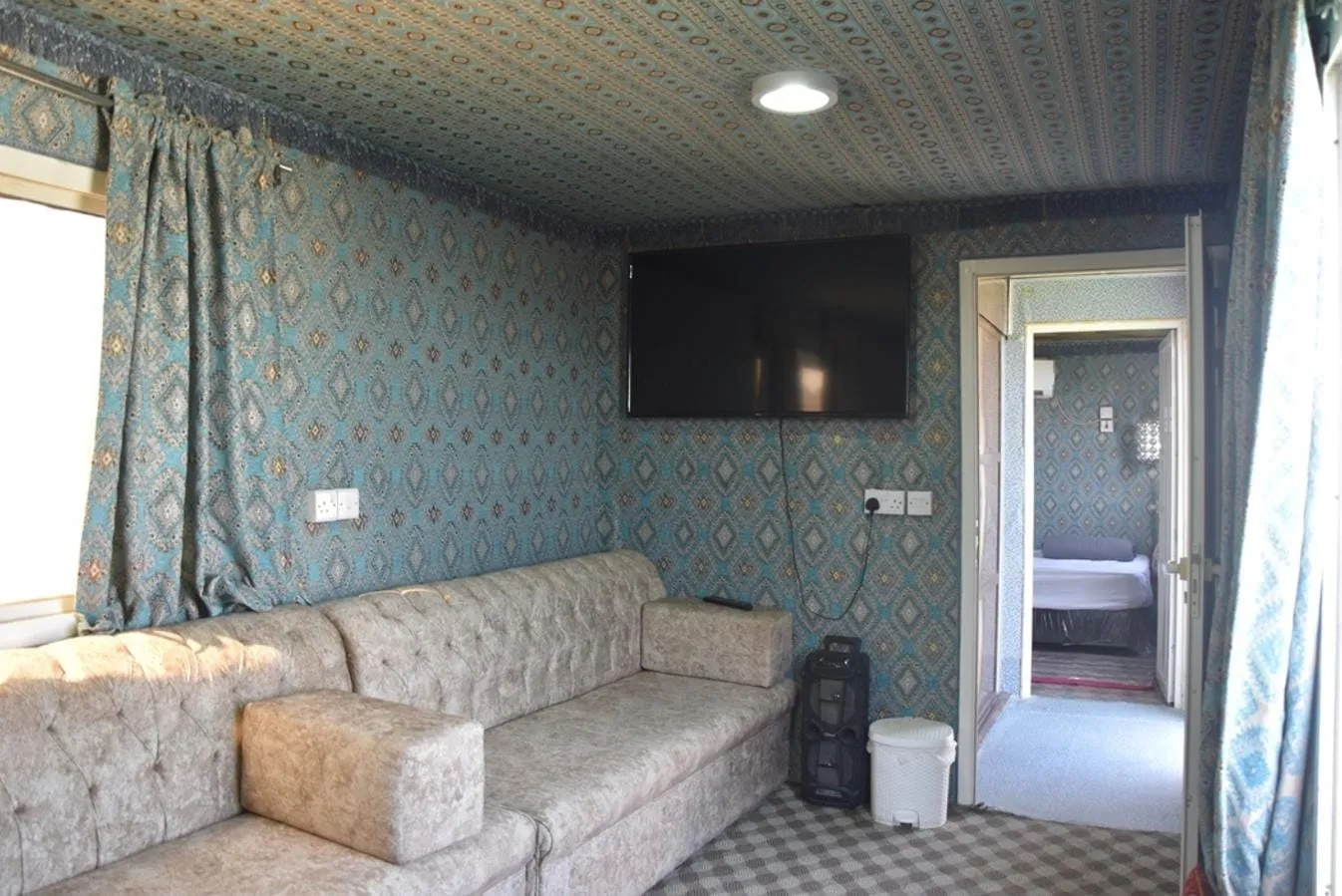 The cabin consists of 1 bedroom with a king size bed, 1 living room can fit 7 guests and 1 bathroom. It also includes an outdoor sitting area with BBQ suitable for 25 people.