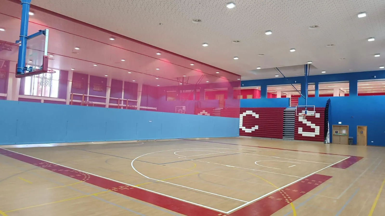 An indoor basketball court located in ACS school with perfect floor like brand new can fit 10 players