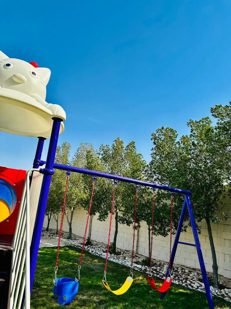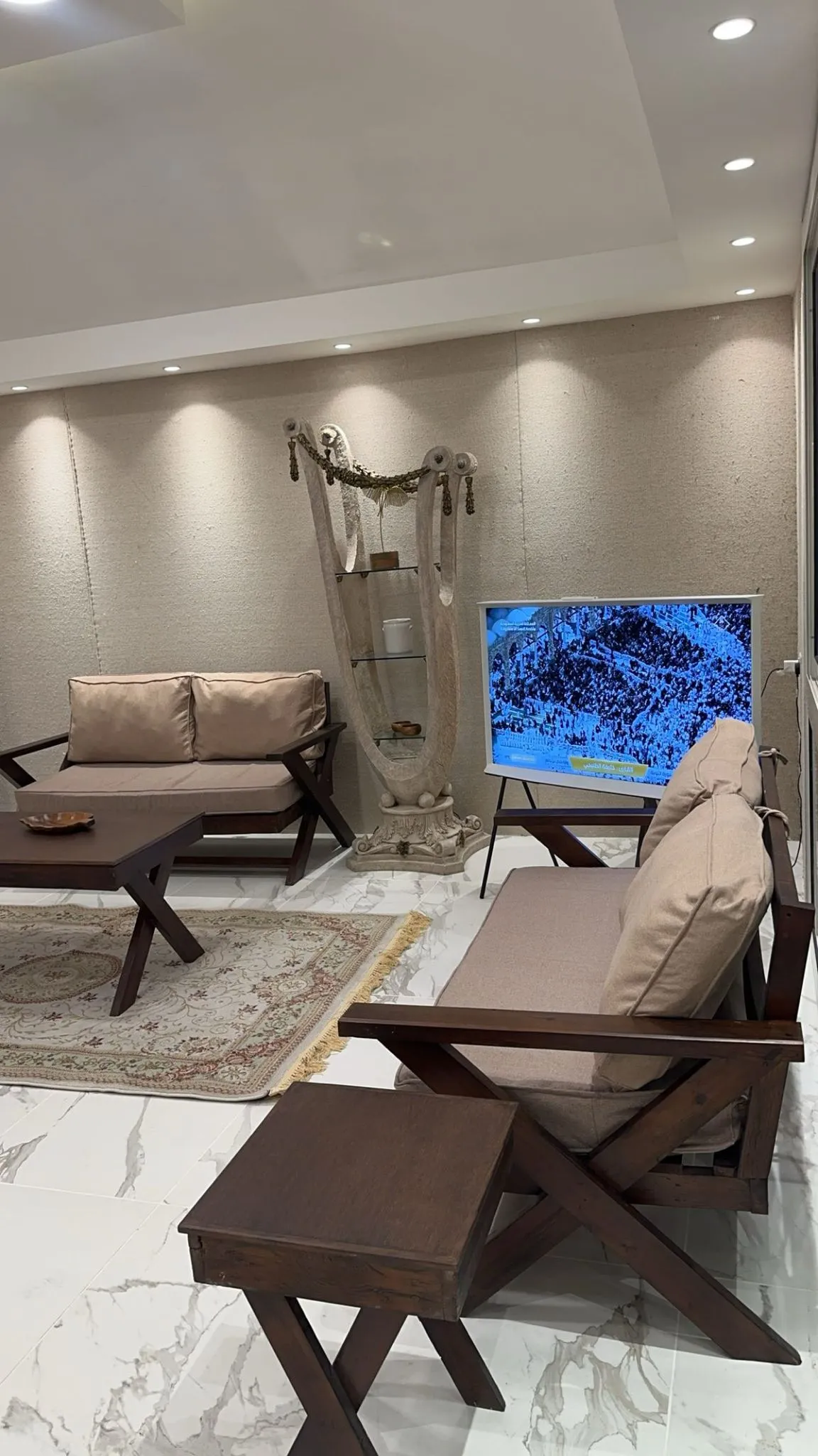 1 double bedroom with two mattresses and private bathrooms for each bedroom, 2 majleses indoor and outdoor.