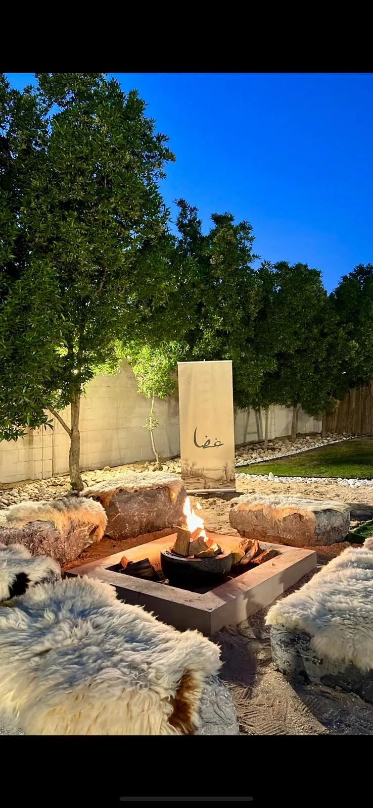 1 outdoor seating area with a fan for cooling and a guest bathroom
