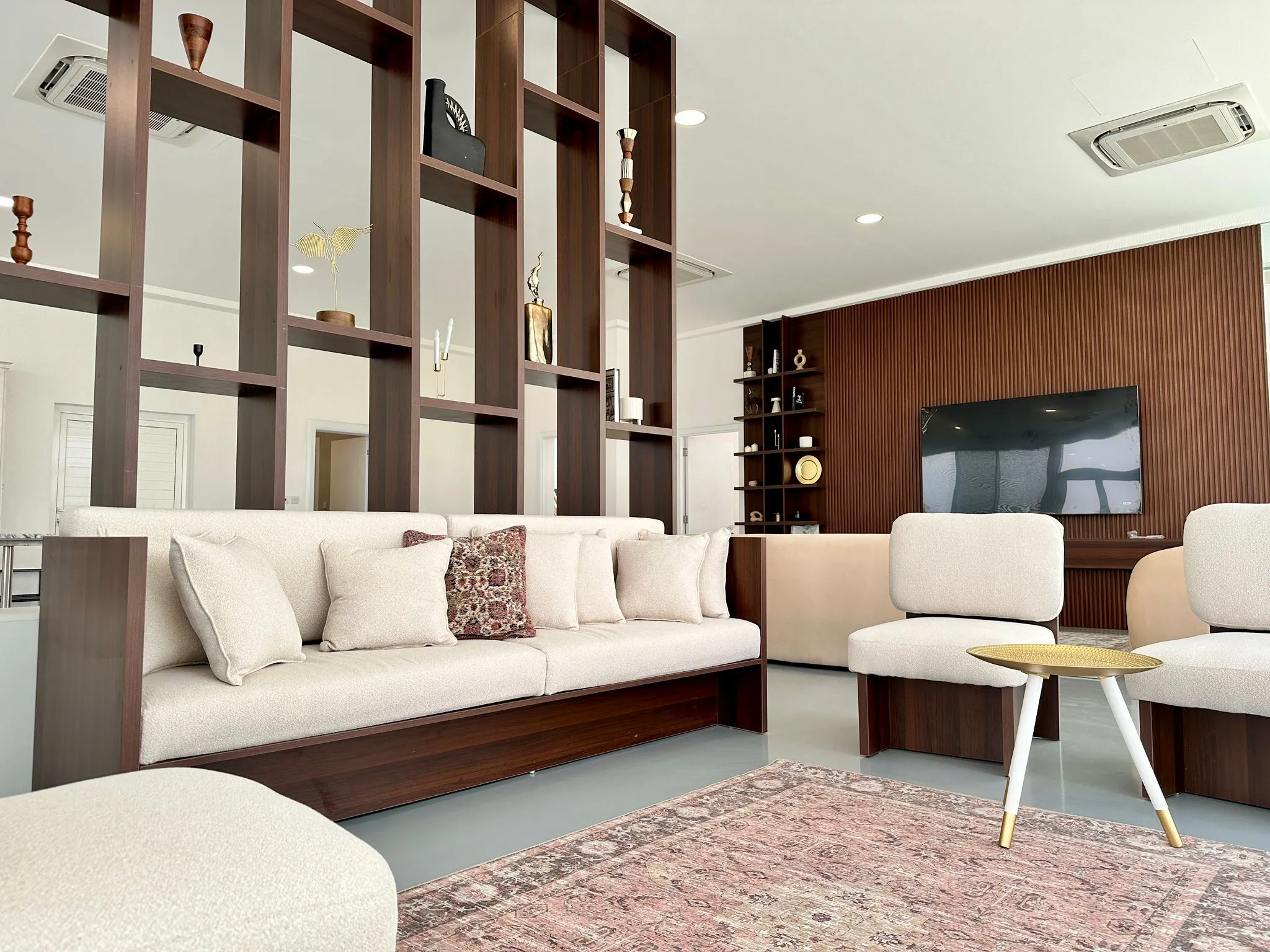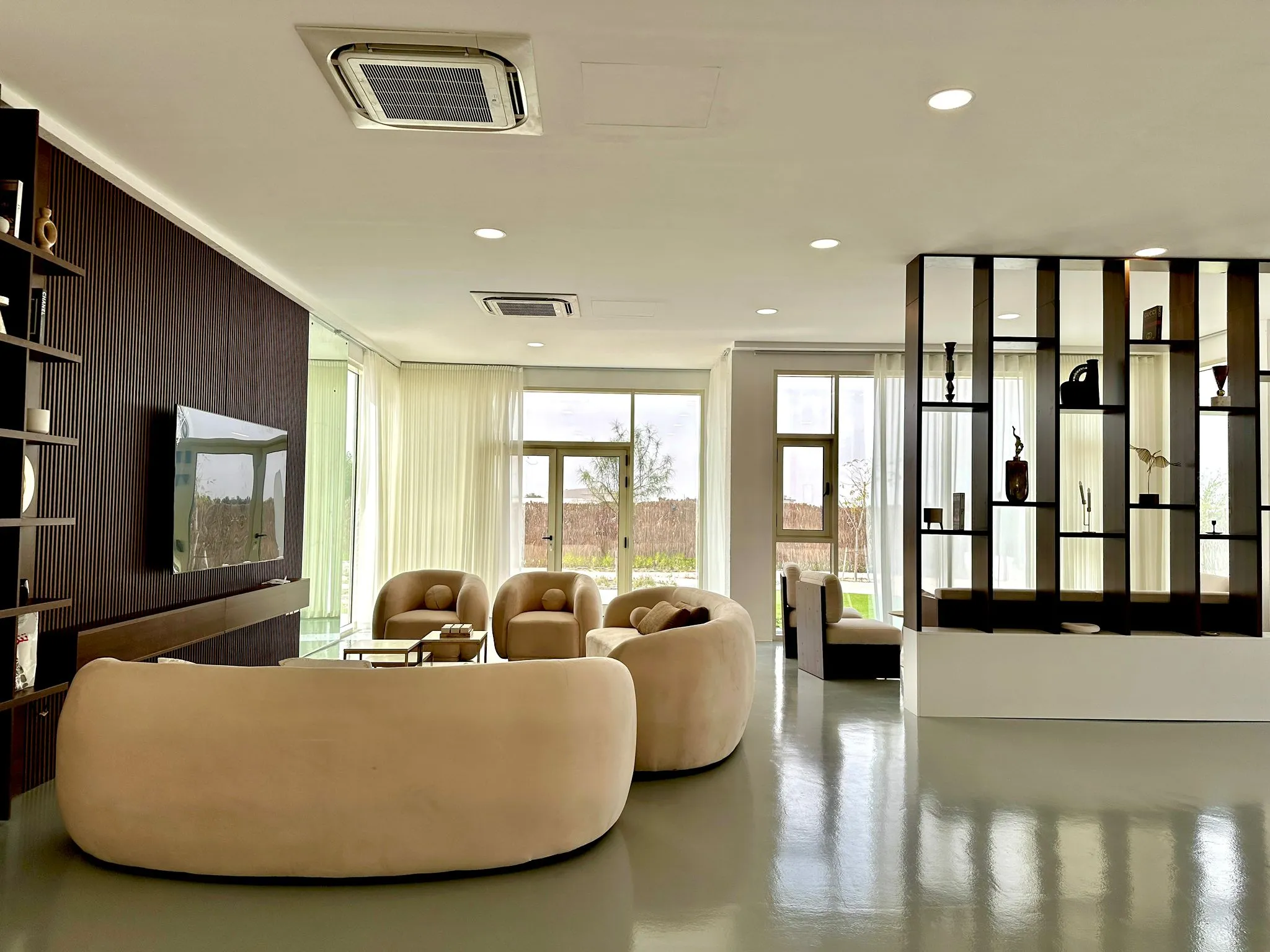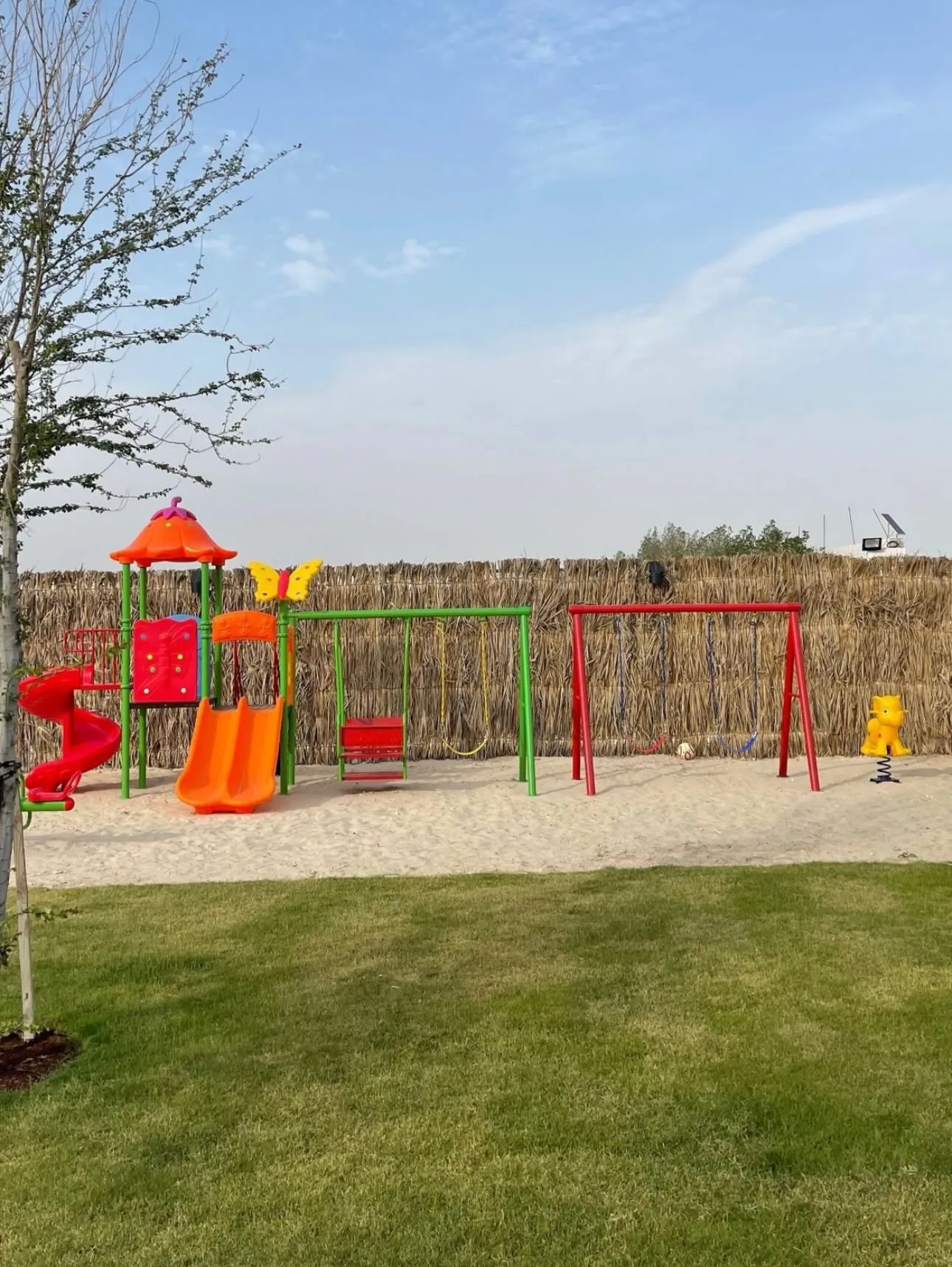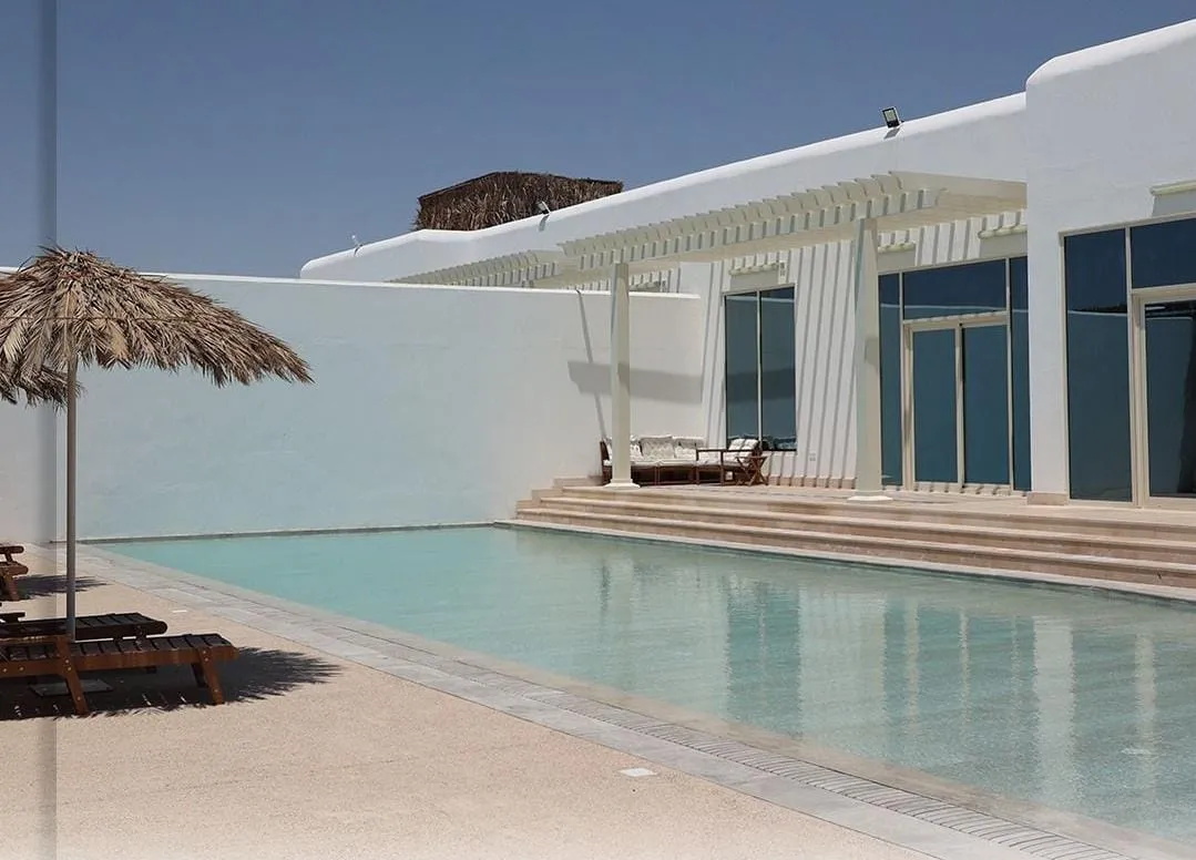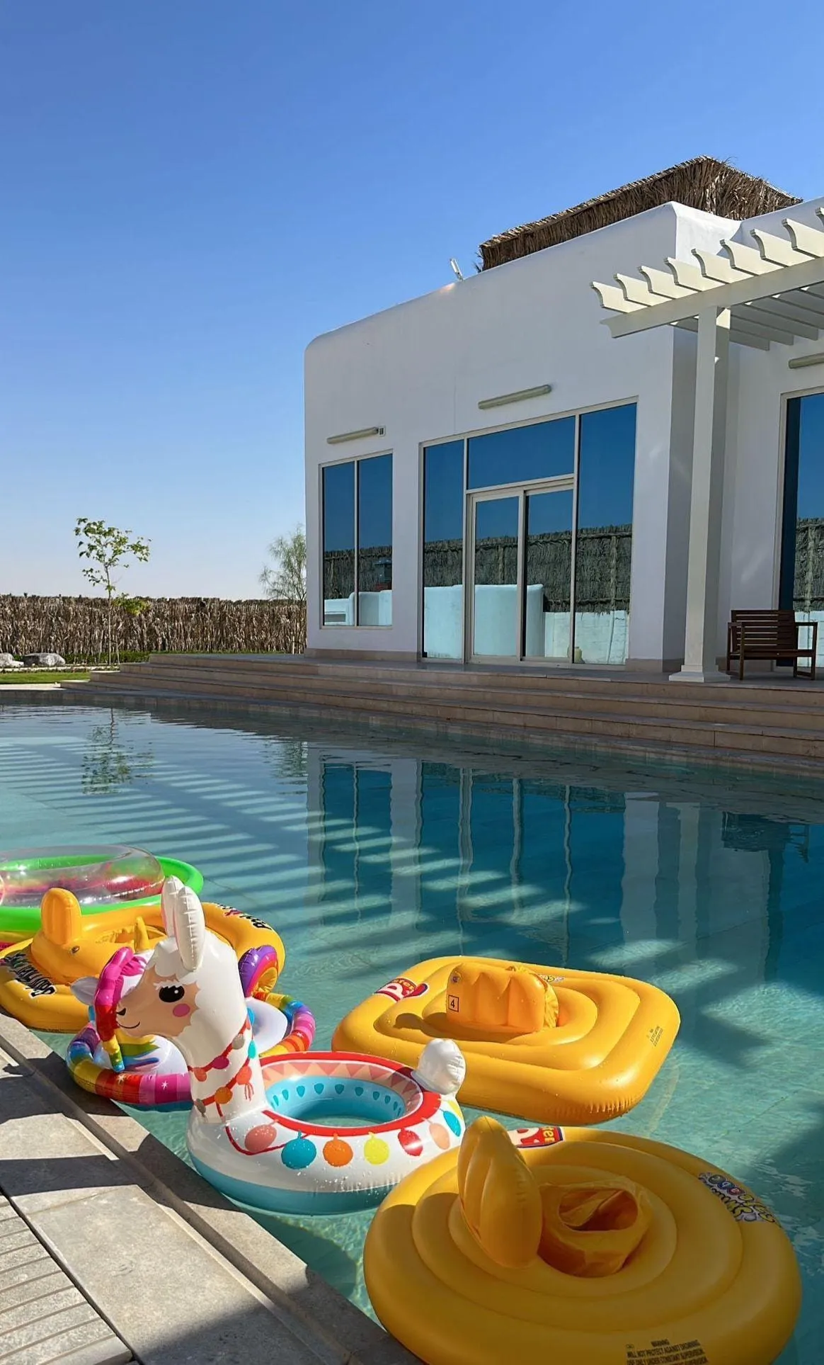 The chalet consists of 3 bedrooms with a jacuzzi in the master bedroom, also an outdoor swimming pool with a depth starts from 20 cm till 150 cm with shower, suitable for kids and adults. Also there is an outdoor majles with toilet and an outdoor sitting area.