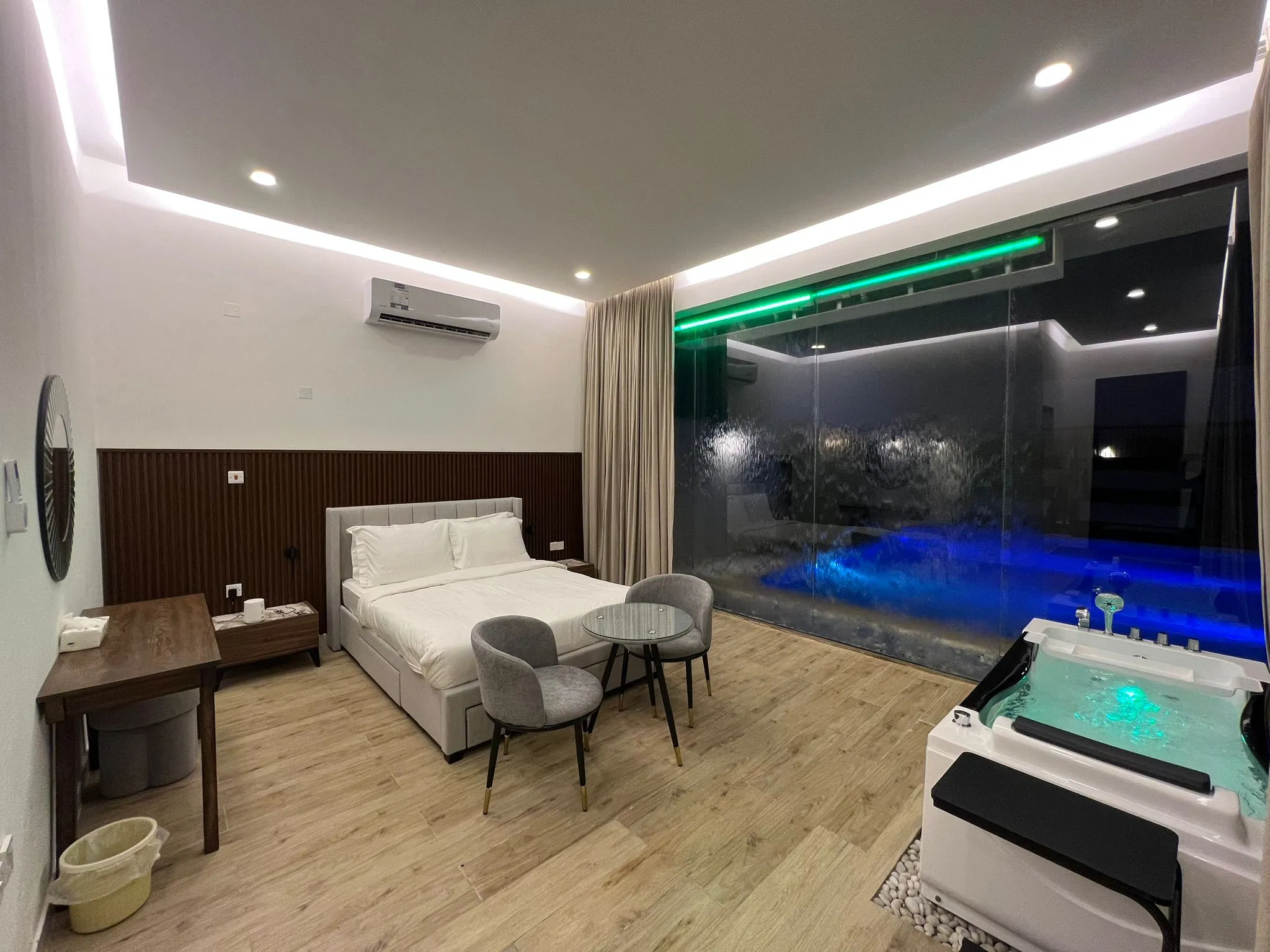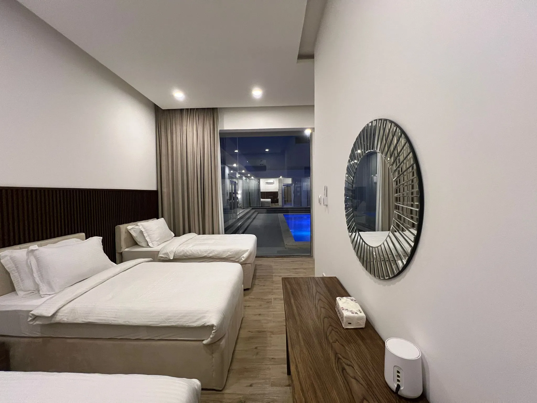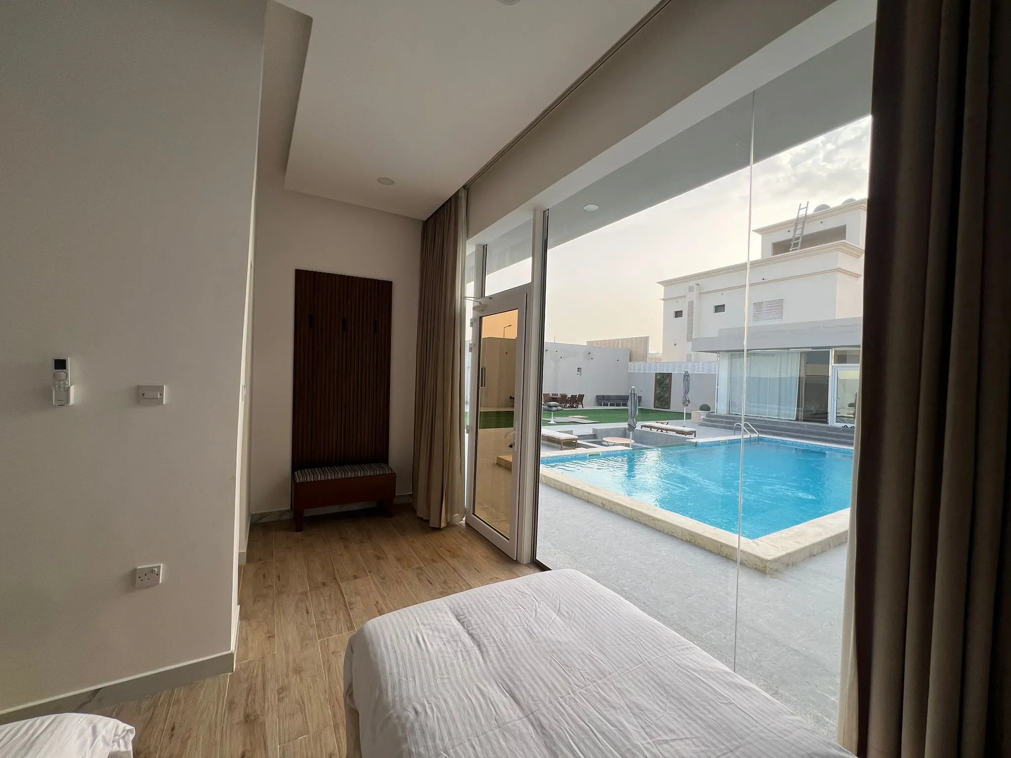 Privacy, space and family comfort are gathered in paradise resort, a luxury staycation located in al-ruwais offers 6 bedrooms and 7 bathrooms, an elegent glass waterfall in the master bedroom.
